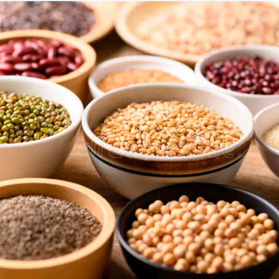 Arroz, feijão, milho e outros grãos cultivados de forma orgânica e sustentável.